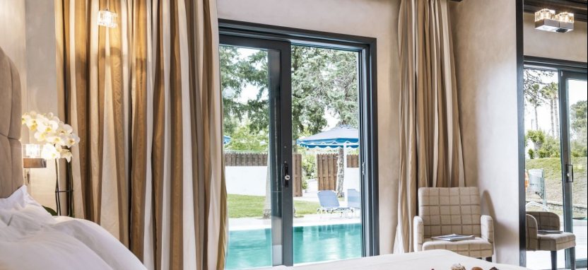 Twin Sharing Pool 3 pax (20 кв. м) - в номере спальня с двумя односпальными кроватями, ванная комната, вид на море, прямой выход к общему бассейну.