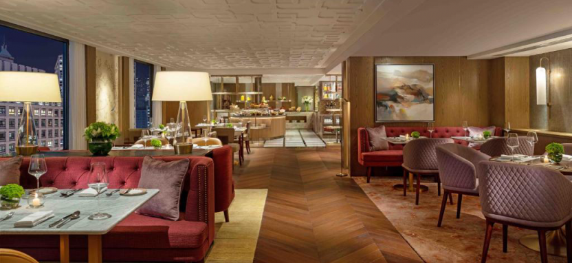 Mandarin Grill+Bar - ресторан и гриль-бар на первом этаже. Современная европейская кухня, блюда из мяса и морепродуктов, гриль. Имеет звезду гида Michelin. Часы работы: с понедельника по пятницу, завтрак с 7:30 до 10:00, обед с 12:00 до 14:30, ужин 18:30 до 22:30 (по воскресеньям – до 21:30).