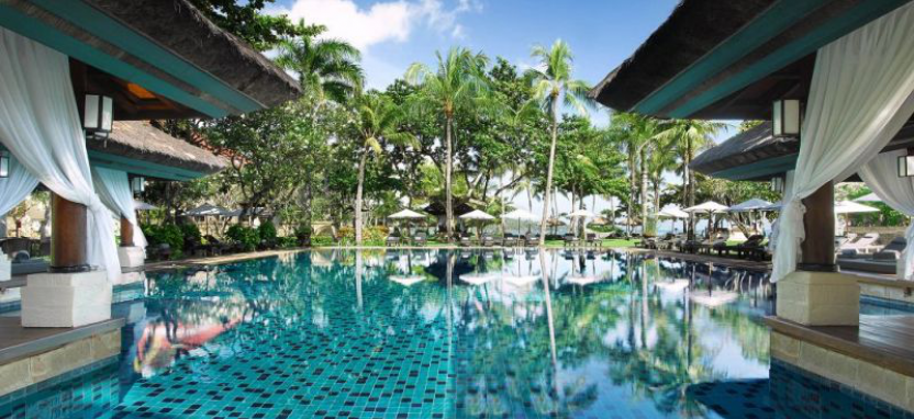 Красивый отель InterContinental Bali 5* окружен пышным тропическим садом. Расположенный рядом с белоснежным песчаным пляжем залива Джимбаран, этот отель позволит вам окунуться в райскую жизнь. Номера и виллы расположены в шести отдельных крыльях-корпусах, а территория комплекса своей планировкой напоминает балийскую рыбацкую деревню.