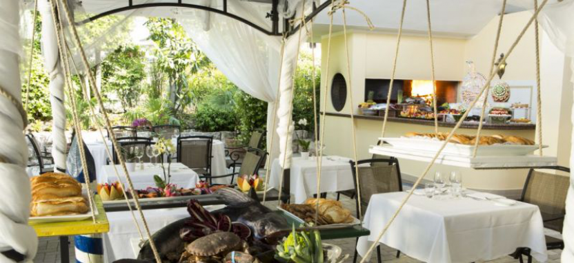 Рестораны (итальянская, средиземноморская, вегетарианская кухня), бар, центр Красоты и Здоровья с просторными отделениями для грязелечения, три термальных бассейна, сауна, солярий, тренажерный зал, парикмахерская. Огромный парк, благоухающий зеленью оливковых деревьев и тропических пальм и ароматами экзотических цветов. Бесплатный прокат велосипедов. Четыре зала для конференций. Камера хранения. Бесплатная парковка. Пункт обмена валюты. Круглосуточная стойка регистрации. Консьерж.