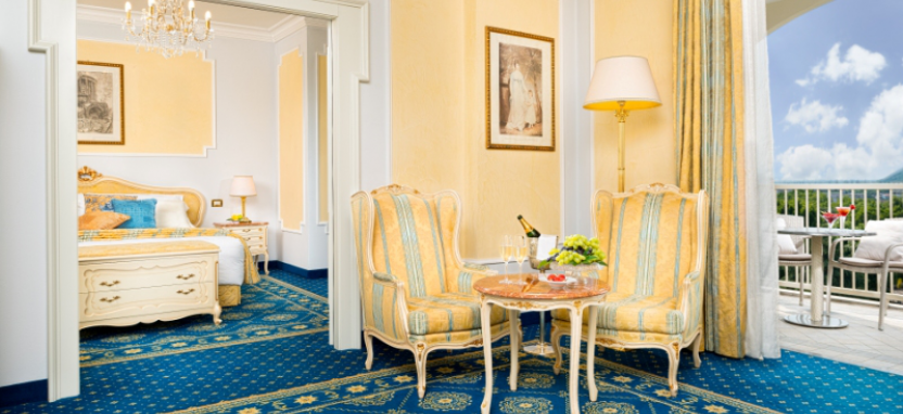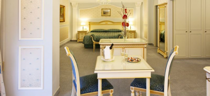 Junior Suite (45 кв. м) - элегантные сюиты в здании Exclusive, оформленные в классическом утонченном стиле, вид на сад отеля и термальные бассейны, гостиная зона с креслами и журнальным столиком, спальня, ванная комната, отделанная мрамором, с ванной и душевой кабиной, балкон.