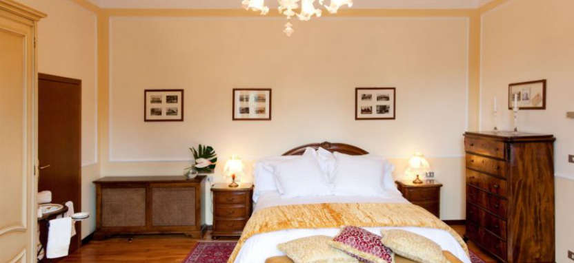 Elegance Room with Spa - элегантные и светлые номера, панорамный вид на сад отеля и термальные бассейны или на променад курорта Абано Терме и холмы, спальня, приватная spa-зона для проведения термальных процедур, ванная комната с ванной, балкон.