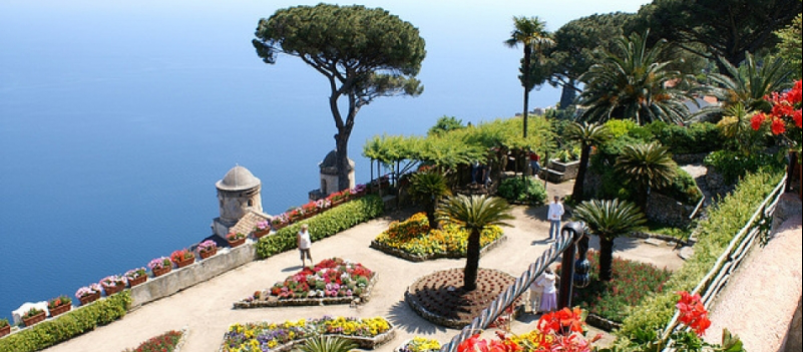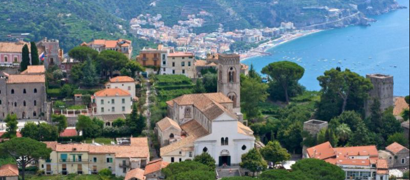Равелло – райский уголок, расположенный на склоне гор Латтари на высоте 350 метров над уровнем моря. Роскошные утопающие в цветах террасы Равелло с изумительными по красоте панорамными видами и мягкий средиземноморский климат навсегда покорили сердца Грига и Вагнера, а также других творческих личностей, и, конечно же, простых смертных, хоть раз посетивших это необыкновенное место, самую высокую точку Амальфитанского побережья. Влюбленные пары, словно бабочки, слетаются в Равелло, чтобы отметить свадьбу или провести медовый месяц или даже сделать предложение в романтической обстановке. Вилла Руфоло XIII века с изумительными садами, где в течение всего лета проводится Музыкальный фестиваль под открытым небом и Вилла Чимброне с "террасой бесконечности" давно стали символами Равелло. А роскошные отели-дворцы со средневековой архитектурой позволяют почувствовать себя истинно королевскими особами. Но главное сокровище Равелло, влекущее паломников всего мира, находится в кафедральном соборе Святого Пантелеймона – здесь хранится капсула с запекшейся кровью святого, раз в году становящаяся жидкой. Ближайшие к Равелло пляжи расположены в деревушке Мармората (15 минут езды) и в Амальфи.