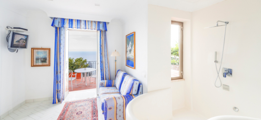 77 номеров и suites, 2 ресторана, 3 бара, винный погреб, открытый панорамный бассейн, частный пляж, 3 просторных конференц-зала, автомобильная парковка, внутренний фуникулер для перемещения между разными уровнями отеля. Шаттл-сервис до центра Позитано. Аренда машин и скутеров, организация трансферов, водное такси.