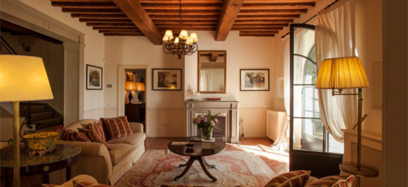 Barrocciaio Suite (48 кв. м): выполнен в элегантном тосканском стиле, расположен на первом этаже, включает спальню, гостиную с камином, ванную комнату с ванной и душем.