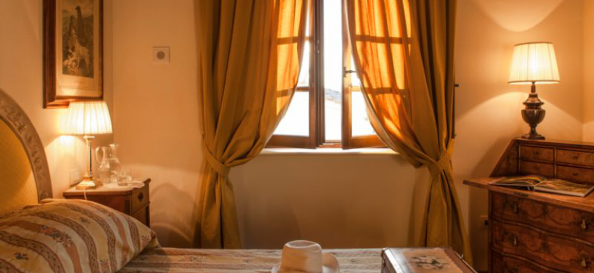 Artigiano Suite (49 кв. м): выполнен в элегантном стиле, расположен на втором этаже, состоит из спальни, гостиной с камином, ванной комнаты с ванной и душем.