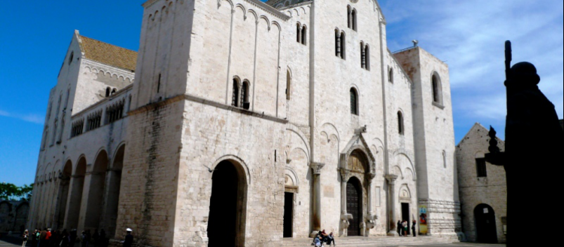 Главная достопримечательность Бари – церковь Святителя Николая (Basilica di San Nicola), где покоятся мироточащие мощи одного из самых почитаемых православных святых. В мае, в день перенесения мощей Св. Николая в Бари (9 мая) церковь до отказа заполнена паломниками, жаждущими прикоснуться к святыне и стать свидетелями чуда, когда небольшой сосуд, опускаемый священнослужителями в раку с мощами, наполняется драгоценным миром. Главные празднования в честь Николая Чудотворца проводятся 9 мая и 6 декабря. В Николаевском музее можно увидеть иконы, облачения, документы разных веков, связанные с историей базилики и города и свидетельствующие о жизни святого. Базилика открыта ежедневно, музей закрыт по пятницам.
