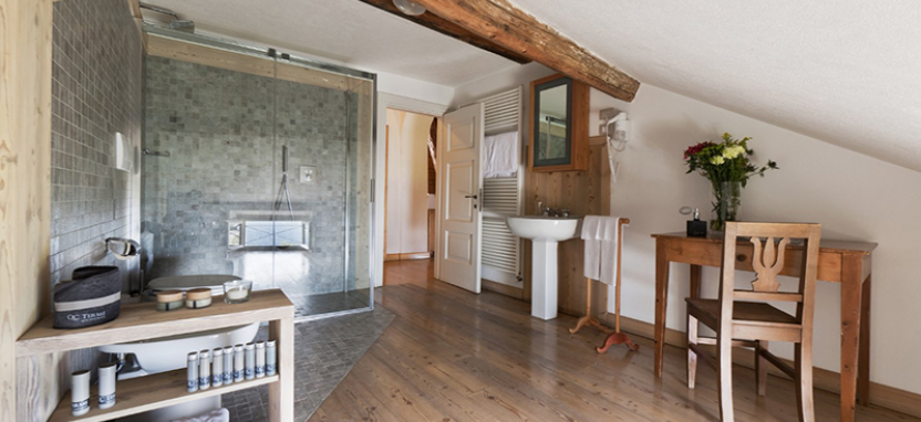 Отель Bagni Vecchi состоит из 36 номеров, часть которых оформлена в стиле средневековой крепости с деревянными полами, украшенными вручную старинными шкафами, создающими достоверную историческую атмосферу, остальные номера с панорамным видом обставлены в традиционном романтическом альпийском стиле.