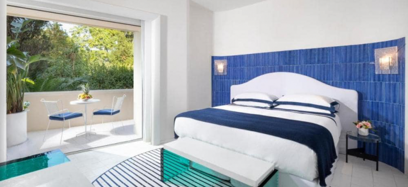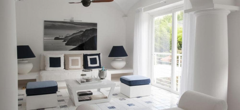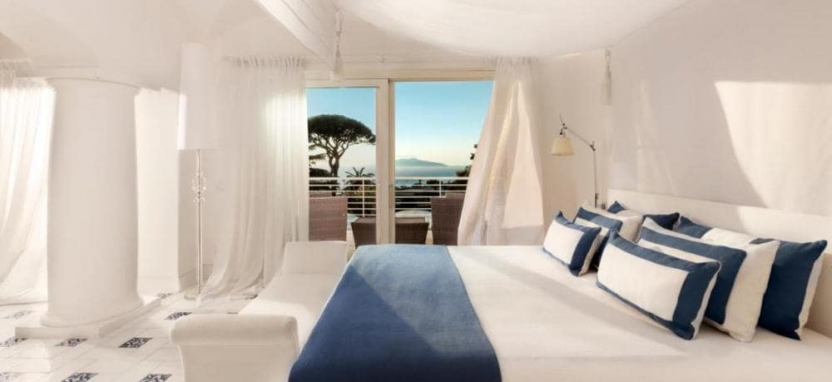 Presidential Suite Paltrow Sea Side Private Pool (150 кв. м) - роскошный номер, расположенный на последнем этаже и обставленный дизайнерской мебелью. Состоит из гостиной, столовой, двух спален, двух ванных комнат, мини-кухни, просторной террасы с садом (прибл. 300 кв. м) и двумя бассейнами, один из которых подогреваемый. Отсюда открывается потрясающий вид на весь остров: на Неаполитанский залив и городок Анакапри с одной стороны и Монте Соларо с другой.