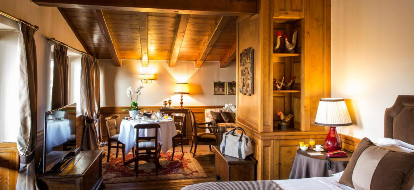 Отель располагает комфортабельными номерами различных категорий, включая Classic Room, Superior Room, Deluxe Room, Family Suite Caterina of Challant, Master Suite Guido Rey, Suite Edward Whymper. Все номера имеют интерьеры в традиционном альпийском стиле, выдержанные в теплых тонах, с потолками, обшитыми деревянными балками, красивыми драпированными шторами, удобной мебелью, изысканной живописью на стенах. В большинстве номеров — балконы.