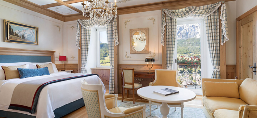 Superior Room (31 кв. м): состоит из спальни с двуспальной кроватью или двумя кроватями twin и гостиной зоной, ванной комнаты с ванной или душем, балкона с видом на парк и горы. Максимальное размещение – 3 человека. Может соединяться с Classic Room и Suite.
