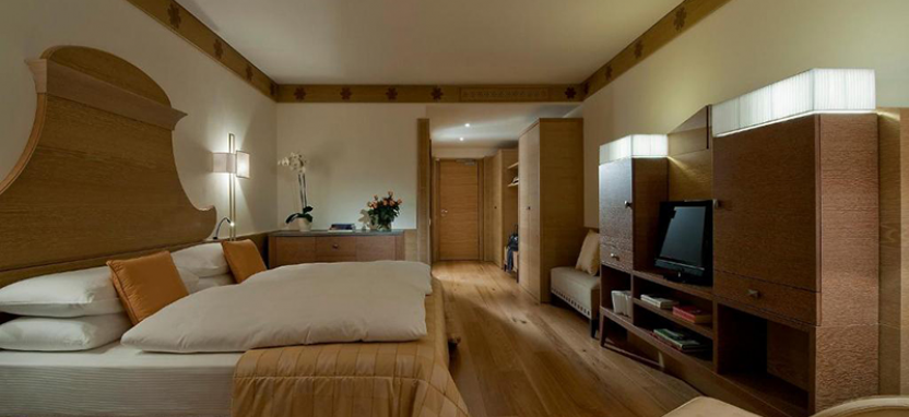 Royal Suite Savoia (81 кв. м): роскошный номер, расположен на 9 этаже, включает гостиную, три спальни, две ванные комнаты, просторную террасу (27 кв. м) с фантастическим видом на Кортину и Доломитовые Альпы.