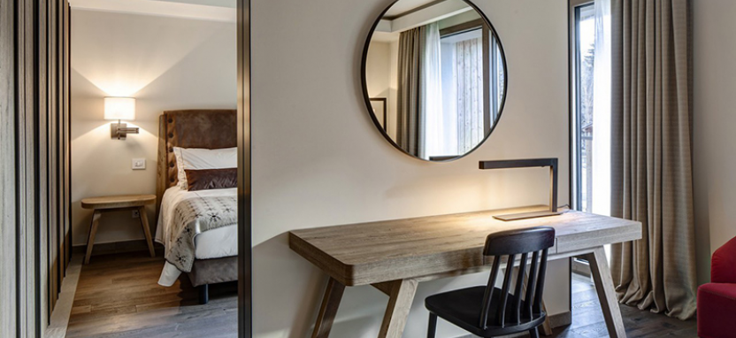 Suite (50 кв. м): состоит из балкона, гостиной, спальни с двухспальной кроватью, гардеробной, ванной комнаты с ванной или душем. Вид на горы.