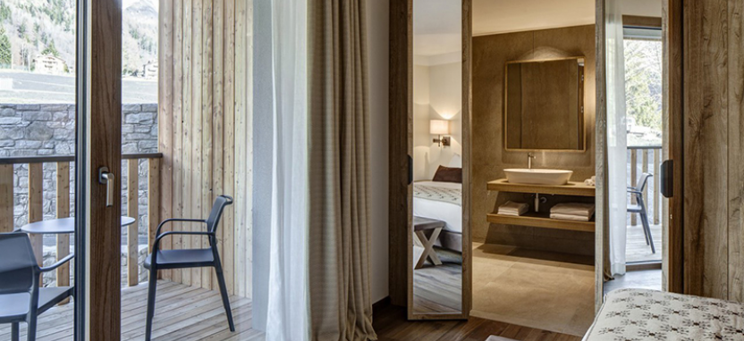 Junior suite (42 кв. м): состоит из балкона, спальни с гостиной зоной (двуспальная кровать), гардеробной, ванной комнаты с ванной или душем. Вид на горы.