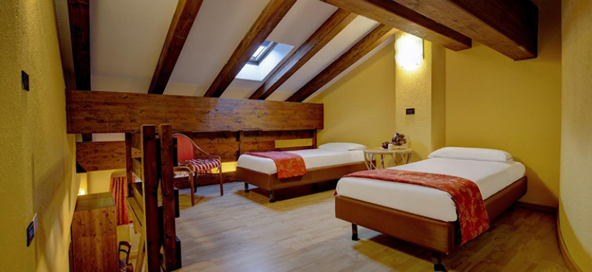 Quadruple Room (31 кв. м): в номере есть большая терраса, телефон, телевизор, сейф, стол, отопление, паркетный пол, фен, халат для ванной, душевые принадлежности, тапочки, ванная комната с ванной или душем, минибар, услуга "будильник". Двухэтажные номера, которые идеально подходят для семейного отдыха или для отдыха компании друзей. Некоторые номера с террасами с видом на Монблан.