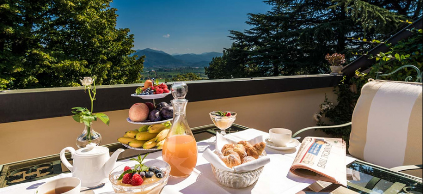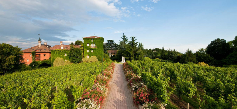 Комплекс гармонично вписывается в природные красоты Ломбардии с ее живописными холмами и виноградниками, которыми можно любоваться, не выходя из номера. Интерьеры комнат выдержаны в нейтральных тонах и украшены шелковыми и сатиновыми тканями, в спальнях присутствует антикварная мебель, а ванные комнаты отделаны великолепным мрамором кремово-розовых тонов.