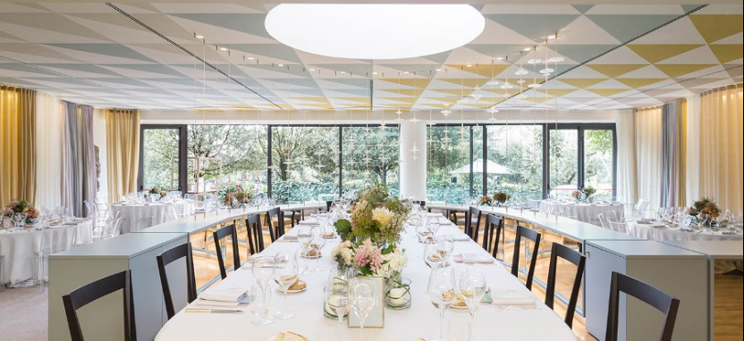 Встречи и конференции Пять уникальных залов для деловых и торжественных мероприятий: Salla Delle Feste(50 – 190 персон). По желанию гостей зал можно разделить на две части при помощи мобильной стены, одна из которых соединена с кухней. SalladellaMusica (20 персон) – элегантный салон с видом на окрестности Франчьякорта, с камином, большими диванами и пиано-баром. Белые потолочные балки прекрасно сочетаются с примыкающей террасой с вечно зеленым садом, где можно организовать небольшие перерывы на кофе и коктейли.