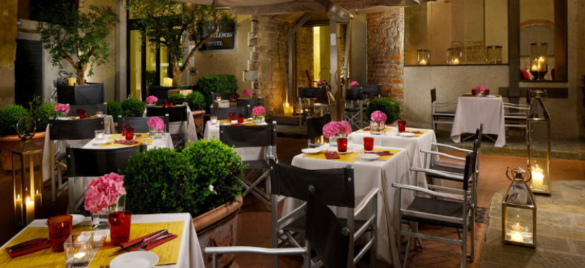 В отеле Brunelleschi: 96 со вкусом обставленных светлых номеров (в том числе 23 single, 64 double, 7 junior suite, 2 executive suite), каждый номер индивидуально декорирован. В отеле 4 этажа, небольшой оригинально оформленный вестибюль с деревянными потолками и каменной кладкой, комфортная гостиная зала с удобными креслами и диванами, с мягкими коврами и изящными колоннами, два бара, конференц-зал (5 – 100 человек). Ресторан отеля Santa Elisabetta – один из самых известных ресторанов Флоренции, славится своей отменной кухней и великолепным выбором вин. Ресторан состоит из трех залов, общей вместимостью 120 персон. Часть столиков расположена в старинной башне, в комнате со сводчатым потолком и оригинальным историческим дизайном, что придает трапезе дополнительную изысканность и утонченность. Ресторан предназначен для завтраков, также здесь можно заказать романтический ужин в средневековой башне, свадебный банкет или деловой ланч. Ужин можно организовать в зале Liberty, на террасе на крыше отеля или это может быть коктейль в частном музее на территории отеля. По желанию гостей консьерж предоставит информацию о других первоклассных ресторанах и тавернах Флоренции и поможет забронировать столик.
