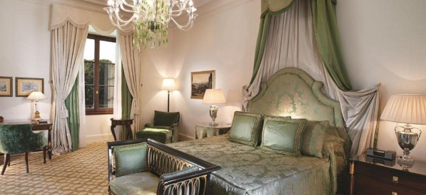 Presidential Suite De Medici (205 кв. м) - в номере балкон, гостиные, столовая, спальня с кроватью king-size, гардеробная, ванная комната, гостевой туалет. Расположен на третьем этаже. Вид на парк.