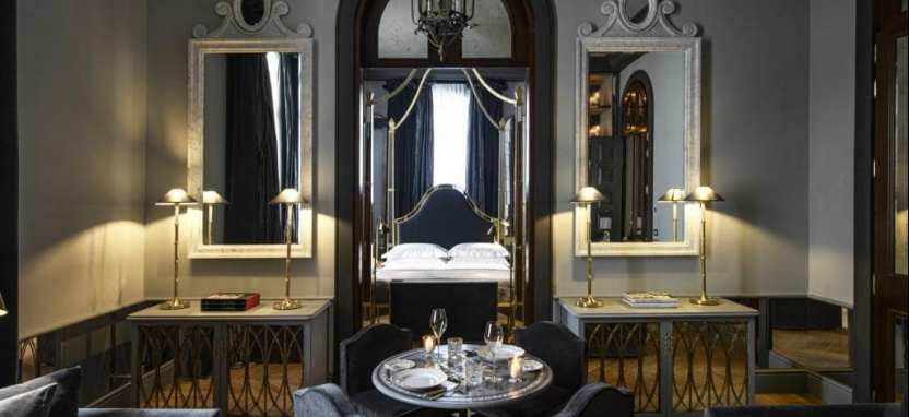 Emerald Patio Suite Bristol (70 кв. м) - в номере две зоны (гостиная и спальня). Уютная студия с видом на внутренний дворик, ванная комната с двумя раковинами, турецкой баней и душем, а также вторая ванная комната с мраморной раковиной в форме раковины. Все номера обставлены дорогой антикварной мебелью.