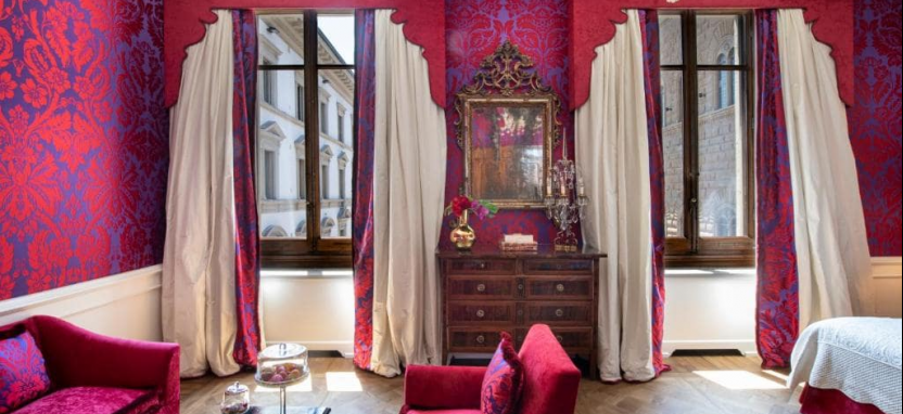 Junior Suite View Helvetia (30-45 кв. м) - в номере спальня, гостиная, ванная комната. В некоторых номера гардеробная. Вид на Палаццо Строцци и торговые улицы города.
