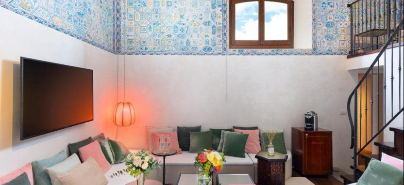 Ojetti Suite (110 кв. м) - двухуровневый номер. Балкон, гостиная зона, спальня, ванная комната. Дополнительно: джакузи. Расположены на верхнем этаже. Вид на холмы.