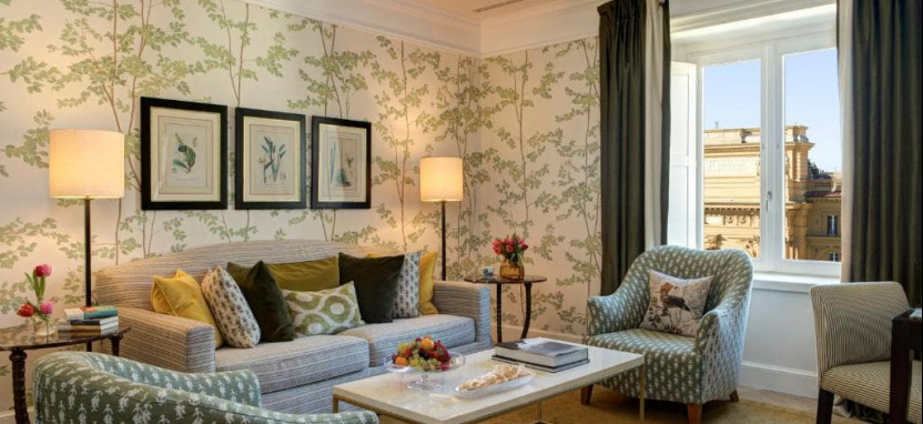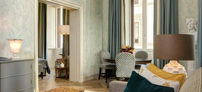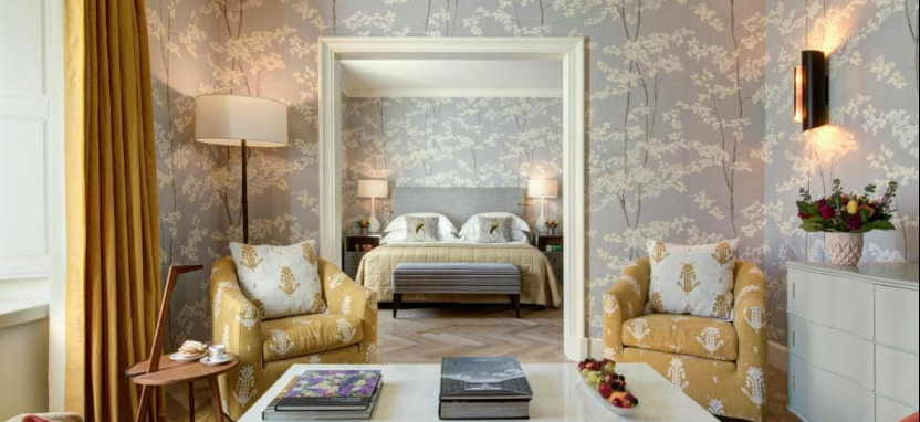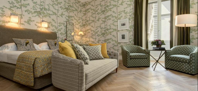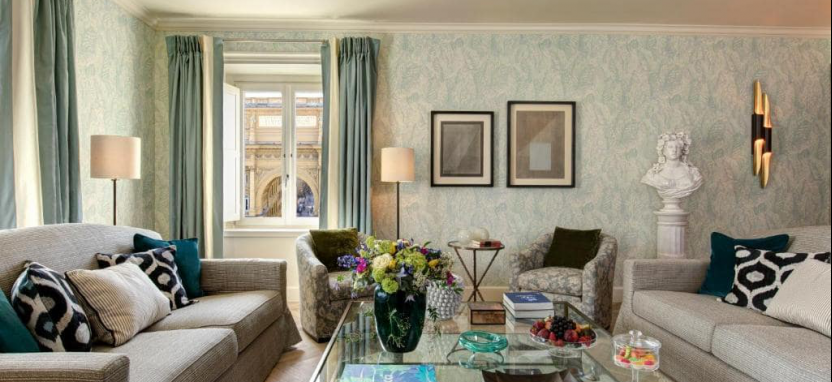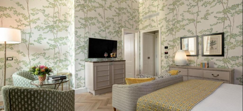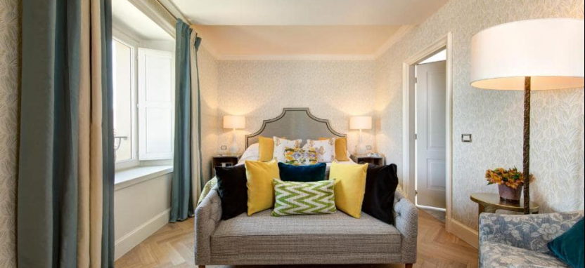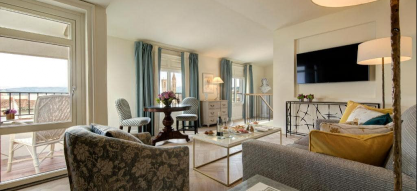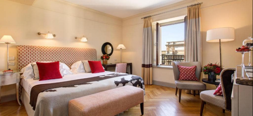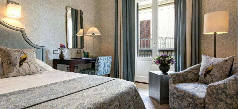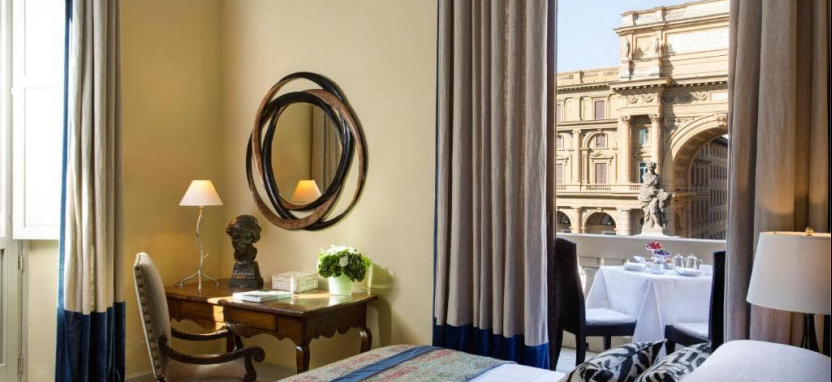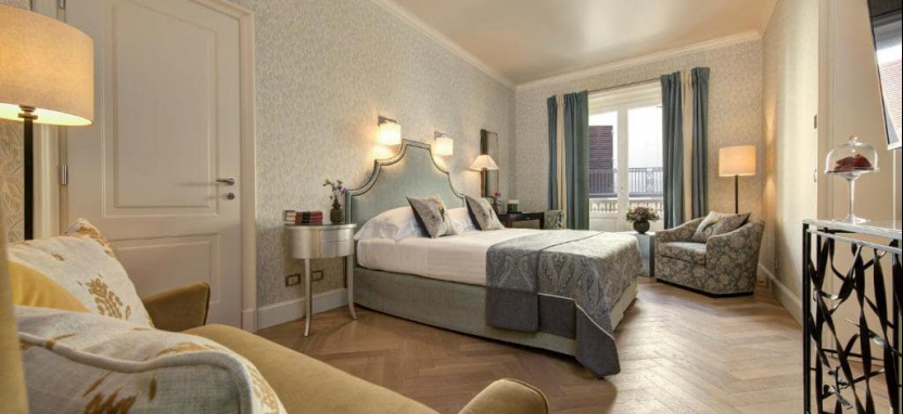 Repubblica Suite (70 кв. м) - в номере 2 балкона, гостиная, спальня с кроватью king-size или с двумя отдельными кроватями, гардеробная, ванная комната с ванной и душевой кабиной. Вид на площадь Республики. Гости данных номеров имеют особые привилегии.