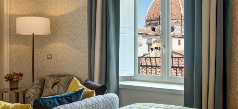 Duomo Presidential Suite (125 кв. м) - в номере гостиная, столовая, спальня с кроватью king-size или с двумя отдельными кроватями, ванная комната с ванной и душевой кабиной. Вид на собор и исторический центр. Гости данных номеров имеют особые привилегии.