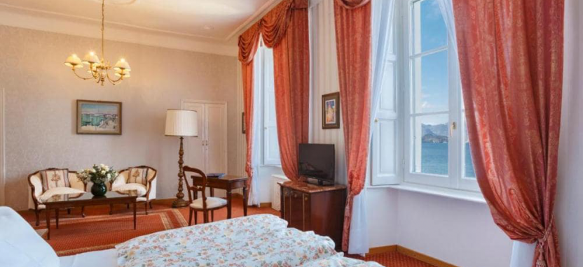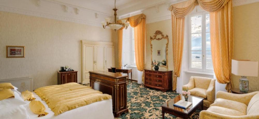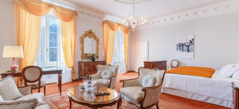 The Imperial Suite (340 кв. м) - просторный сьют, состоящий из 4 спален, 4 ванных комнат и одной общей гостиной. Из всех окон и балконов вид на озеро. Сьют объединяет 2 сьюта Royal, 2 номера Deluxe и одну красивую залу с расписными потолком и роялем.