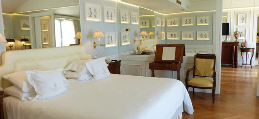 Classic Suite (50 кв. м): роскошный просторный номер в классическом стиле с видом на залив Портофино декорирован в светлых тонах. В оформлении интерьера использована элегантная старинная мебель. Состоит из спальни, гостиной, ванной комнаты, меблированного балкона или террасы. Возможно соединение с номером Superior Double Room.