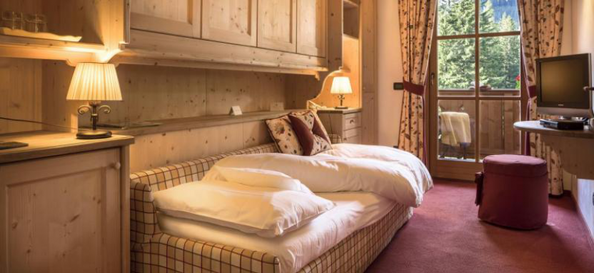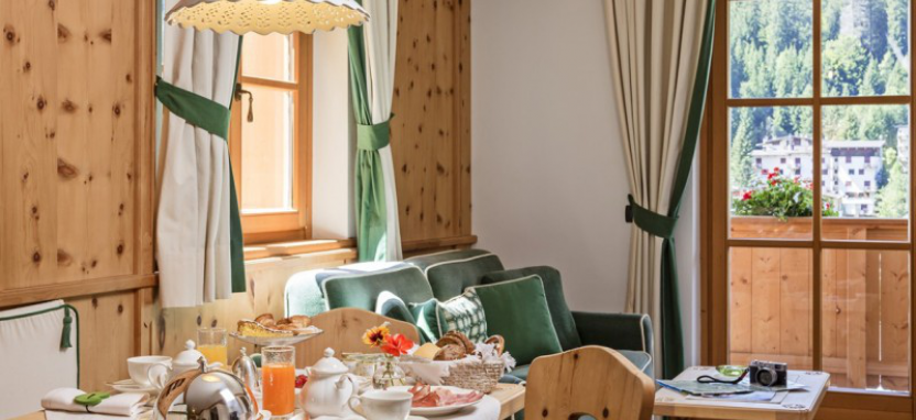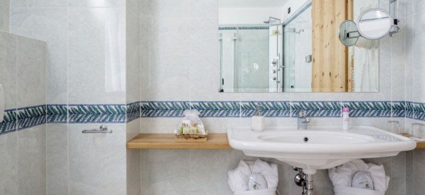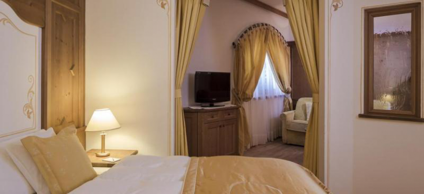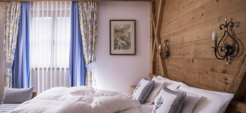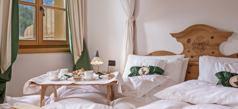 Junior Suite Classic “Azzurro” (34 кв. м) – номера украшены старинными панелями из натуральной ели и березы и шерстяным ковровым покрытием серо-голубого цвета, а из окон открывается вид на горы, лес и городок. В каждом двухместная кровать и диван-кровать (максимальное размещение – 3 человека). Номер Myosotis 104 – небольшая лужайка, душевая кабина с гидромассажем, первый этаж. Номера Betulle 204 и Cervi 304 расположены на втором и третьем этажах соответственно и предусматривают просторные балконы на южную солнечную сторону, гардеробную и большую ванна с гидромассажем.