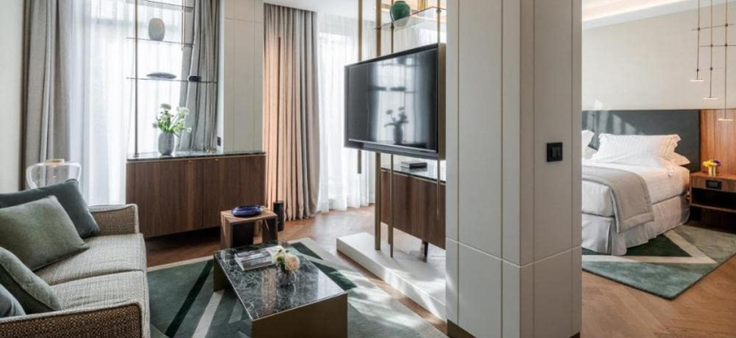 Leonardo Suite (60 кв. м) - сьют на верхнем этаже отеля с отдельной гостиной комнатой и с потрясающими видами на Милан. Размещение до 3 гостей.