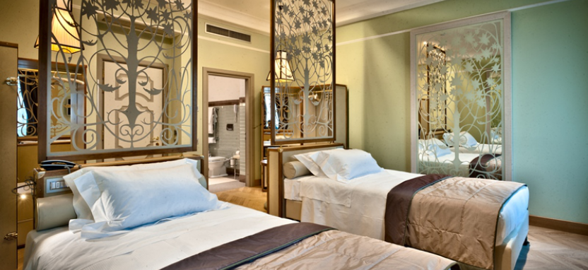 Del Viaggiatore Deluxe Room (37 кв. м) - роскошные номера, характеризующиеся винтажным стилем обстановки, спальня с двумя односпальными кроватями, ванная комната в ретро-стиле, оформленная в зеленых и темно-серых тонах.
