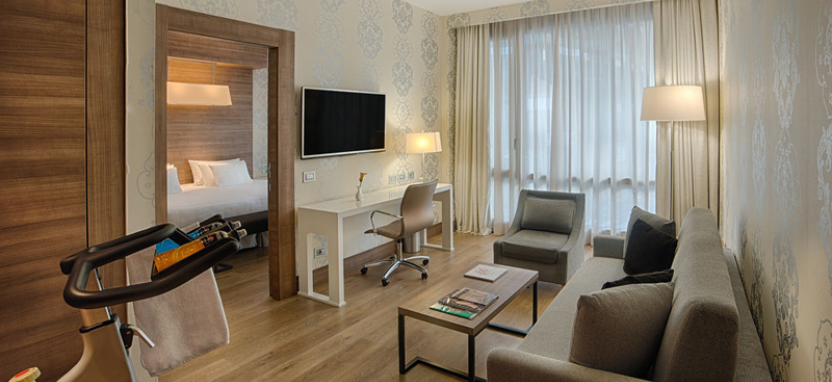 Premium Room XL 3 pax (25 кв. м) - просторные и элегантные номера, оформленные в современном стиле, вид на площадь Ларго-Аугусто, гостиная зона с диваном и рабочим столом, спальня с двуспальной или двумя односпальными кроватями, ванная комната.