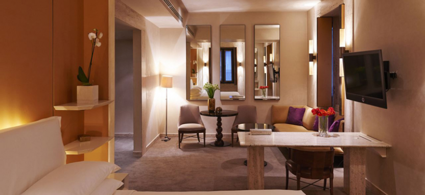 Duomo Suite 3 pax (115 кв. м) - просторные и роскошные сюиты со стильным декором, панорамный вид на стеклянный купол Галереи и город, просторная гостиная, рабочая зона, обеденная зона, небольшая кухня, спальня с большой двуспальной или двумя односпальными кроватями, ванная комната, отделанная итальянским мрамором, с гидромассажной ванной и душевой кабиной, гостевая ванная комната, роскошная открытая терраса с обеденной зоной, сюиты данной категории возможно объединить с номером категории Deluxe Room.