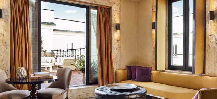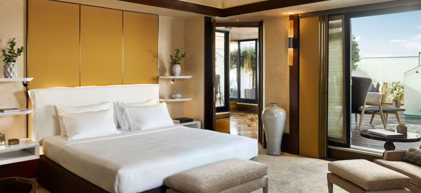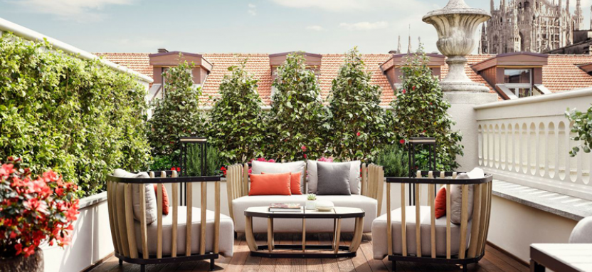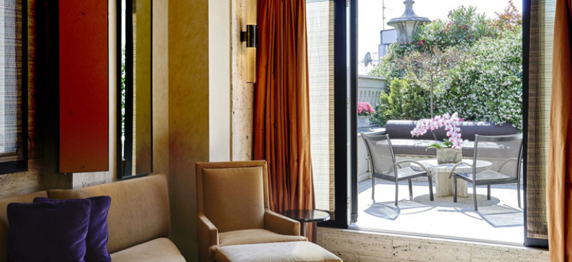 Park Terrace Suite 3 pax (65 кв. м) - стильные сюиты, интерьер которых украшает венецианская лепнина ручной работы, роскошный ковер и светильники из муранского стекла, панорамный вид на Милан, просторная гостиная, просторная рабочая зона, спальня с большой двуспальной кроватью, ванная комната, отделанная итальянским мрамором, великолепная терраса с обеденной зоной.
