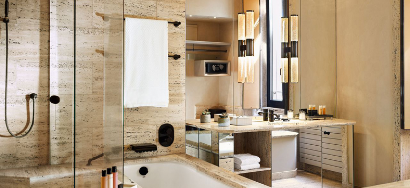 Standard Room 2 pax (35-38 кв. м) - стандартные номера со стильным декором, вид на ухоженный внутренний двор или город, гостиная зона с диваном и рабочим столом, спальня с двуспальной кроватью, ванная комната, отделанная итальянским мрамором, с ванной и душем.