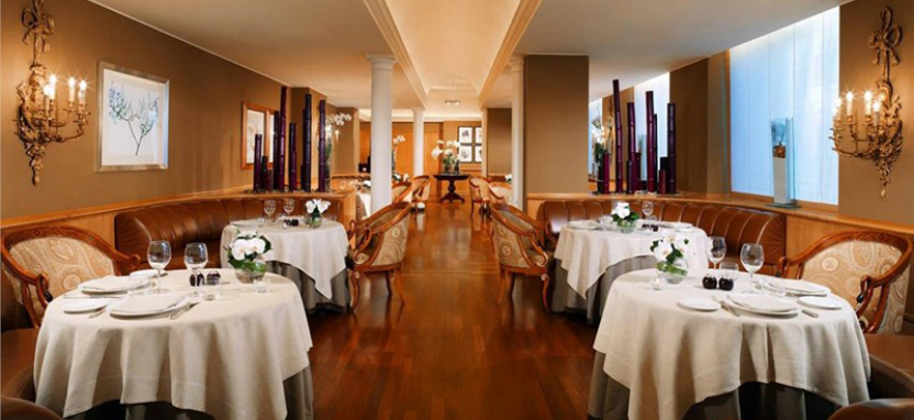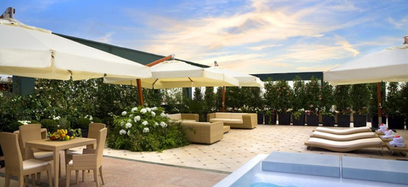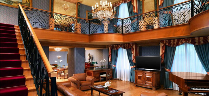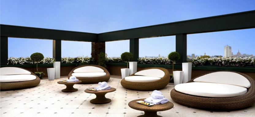 Presidential Suite (200 кв. м) - уникальный двухуровневый президентский сюит, украшенный драгоценными люстрами, дамасскими тканями и антикварной мебелью, прекрасный вид на Милан и собор Duomo, 8-9 этаж, просторная отдельная гостиная с роялем, обеденная зона, эксклюзивный винный погреб, спальня, 2 роскошные ванные комнаты, частная парная, собственная терраса (150 кв. м) с обеденной зоной, зоной отдыха и джакузи.