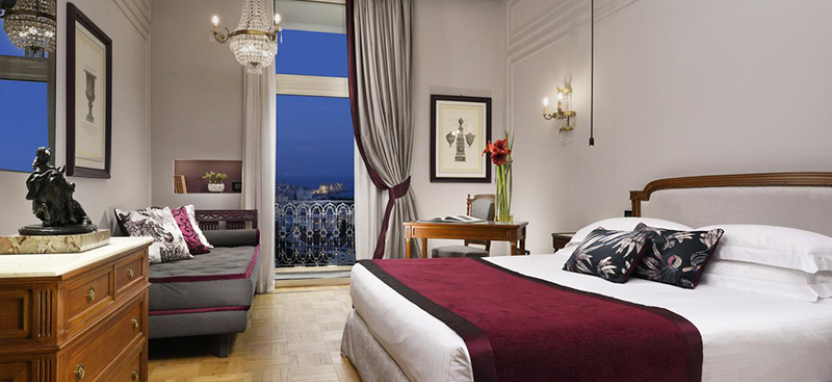 Deluxe Room (30-35 кв. м): просторный элегантный номер в классическом стиле с захватывающим видом на Неаполитанский Залив и Неаполь, состоит из спальни с двуспальной кроватью или двумя кроватями twin, уютной зоны отдыха, ванной комнаты , отделанной мрамором, террасы.