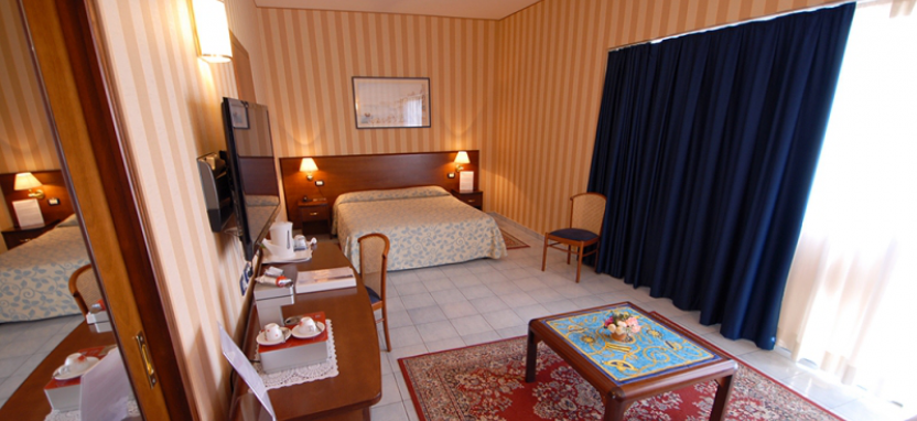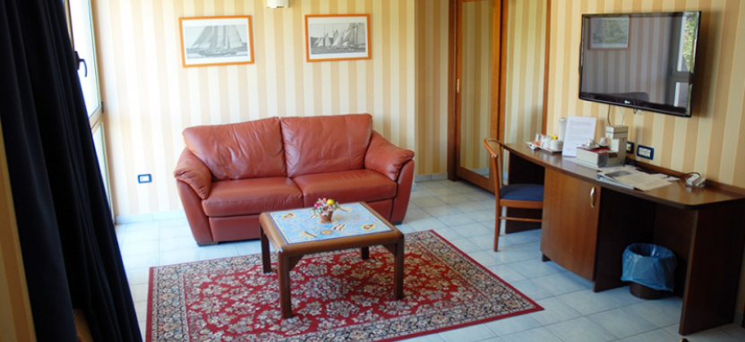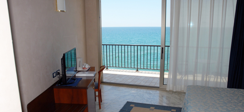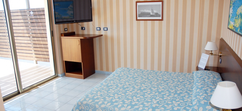 В каждом номере отеля L’Approdo ванная комната с душем или ванной, индивидуальный кондиционер, сейф, телефон, телевизор с плоским экраном (спутниковые каналы, есть канал на русском языке), мини-бар. Практически все номера отеля имеют балкон с видом на море. Важно! Все одноместные номера без балкона. На полу плитка. Электрический чайник и принадлежности для приготовления чая и кофе.