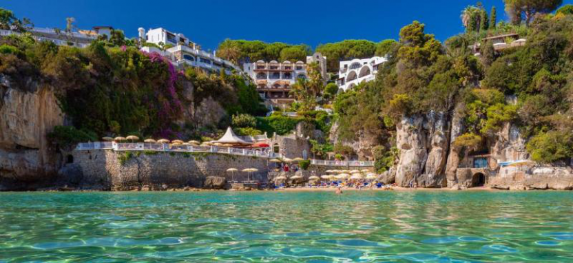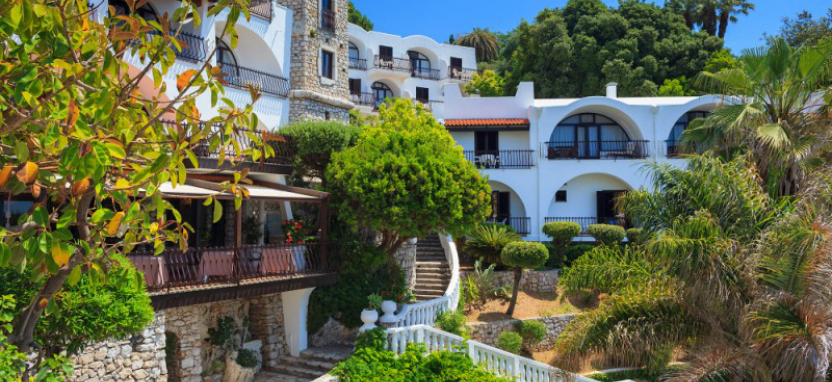 С террас отеля, как и из большинства номеров, открывается изумительный вид на залив и яхты. Внешне гостиница напоминает богатую летнюю виллу, состоящую из нескольких зданий, которые по склону спускаются к самому морю. И это не случайно, ведь отель строился когда-то исключительно как личная резиденция актрисы Джины Лолобриджиды.