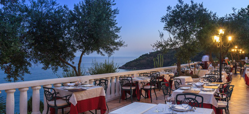 Ресторан La Terrazza degli Ulivi – панорамный ресторан с террасой, открыт с утра до вечера, местная и средиземноморская кухня, меню a la carte, «меню дня». Романтические ужины при свечах с видом на море. Спуск по лестнице.