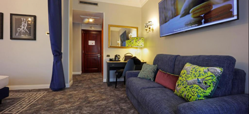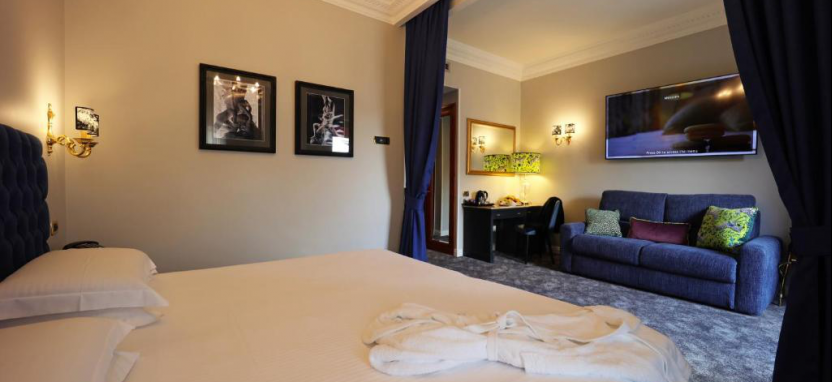 В каждом номере: ванная комната (все номера с ванной, в сьютах есть джакузи), фен, кондиционер, мини-бар, сейф, телевизор, телефон, письменный стол, звукоизоляция. Все номера оформлены в одинаковом классическом стиле, на полу ковровое покрытие. Во всех номерах халаты и тапочки.