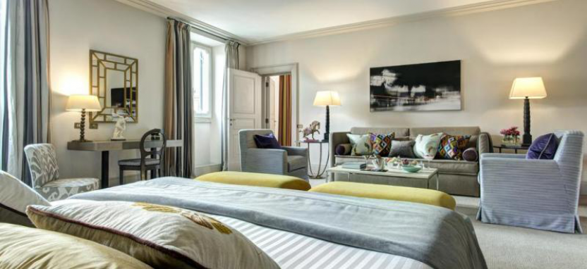 Deluxe Room 2/3 pax (40 кв. м) - комфортабельные номера, вид на город или сад, гостиная зона, спальня с двуспальной или двумя односпальными кроватями, просторная мраморная ванная комната, декорированная мозаикой в римском стиле, с ванной и душем, некоторые номера данной категории могут быть объединены между собой.