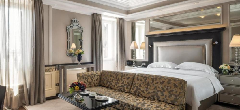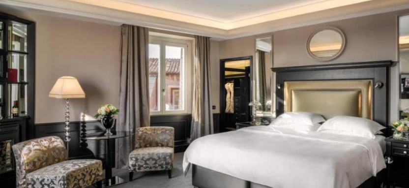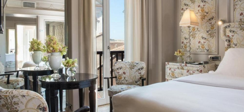 Grand Deluxe Suite Forum (77 кв. м) - изысканный сьют на 2 этаже, декорированный золотым французским шелком и украшенный великолепными картинами, уникальный вид на Испанскую лестницу, рабочий кабинет, отдельная гостиная, спальня, главная ванная комната, отделанная мрамором, с джакузи, ванной и душевой кабиной, дополнительная гостевая ванная комната, балкон, сюит данной категории можно объединить с двумя двухместными номерами.