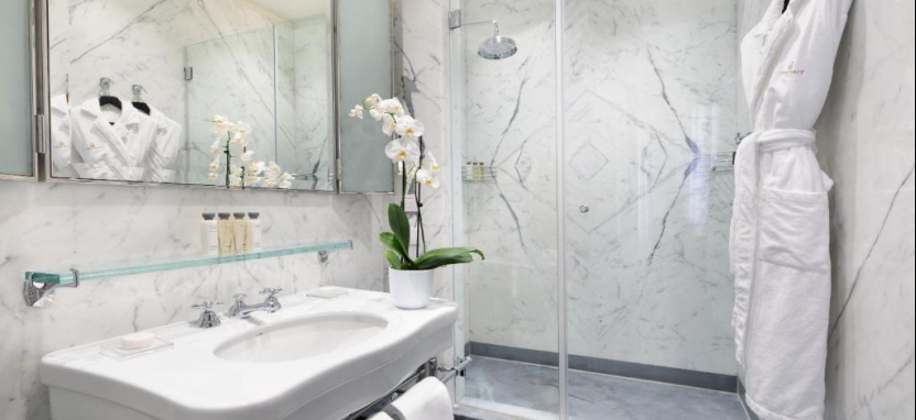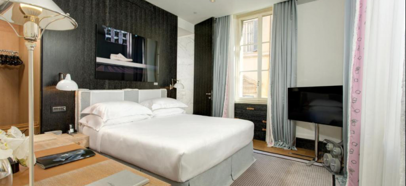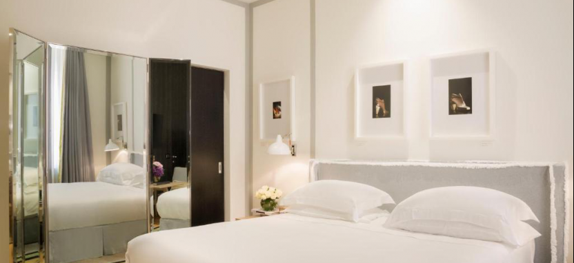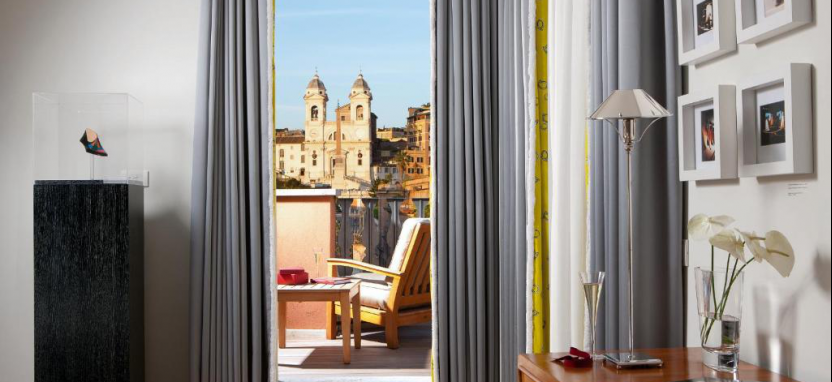 Junior Suite 3 pax (46 кв. м) - просторные сюиты, в оформлении которых были использованы деликатные оттенки серого, шёлк и кожа особой выделки, вид на город, отдельная очаровательная гостиная с диваном, небольшая встроенная кухня, элегантная спальня с двуспальной кроватью, ванная комната из белого мрамора, в одном из сюитов данной категории есть небольшой балкон, который выходит на знаменитую торговую улицу Виа Кондотти, в другом сюите данной категории есть великолепная мраморная ванна и сауна.