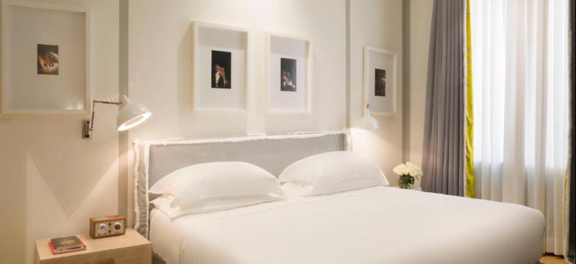 В здании всего 14 номеров. В оформлении интерьеров Portrait Roma были использованы черно-белые фотографии звезд мира моды и кино и нежные оттенки серого и розового цветов, возвращающие в атмосферу элегантности и шика 50-х годов прошлого века. В роскошном и изысканном Portrait Roma гости наслаждаются завтраком на великолепной террасе с видом на церковь Тринита дей Монти или непросредственно в апартаментах.