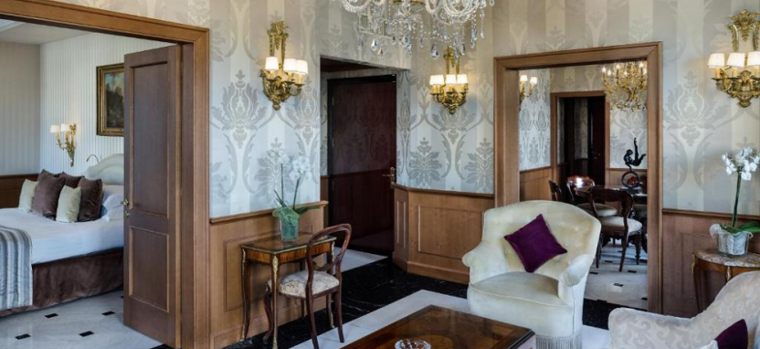 Regina Suite 2/3 pax (80 кв. м) - изысканный сюит, отличающийся удобством и универсальностью, вид на знаменитую улицу Венето, 4 этаж, отдельная гостиная с диваном, обеденная зона, спальня, изысканная ванная комната, отделанная итальянским мрамором, изюминку сюиту придает вид на бывшую резиденцию королевы Италии, сюит данной категории можно объединить с номером категории Deluxe Room и двумя номерами категории Grand Deluxe Room.