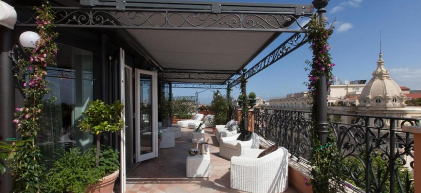 Ludovisi Suite 7 pax (180 кв. м) - роскошный сюит, захватывающий вид на Via Veneto и Via Liguria, 7 этаж, элегантная гостиная с диваном и креслами, столовая, 3 спальни, 4 ванные комнаты, отделанные итальянским мрамором, просторная терраса (30 кв. м).