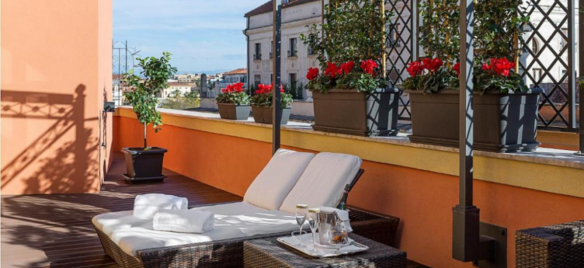 Margherita Suite 2/3 pax (100 кв. м) - уникальные сюиты с мраморными полами и оригинальными люстрами из муранского стекла, оформленные в классическом итальянском стиле, вид на знаменитые римские улицы, 5 этаж, изысканная гостиная с камином, спальня, ванная комната, отделанная итальянским мрамором, терраса с джакузи на открытом воздухе.